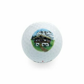 Dieser Golfball mit dem Motiv Tirolerhütte ist das ideale Geschenk für alle Golffreunde.